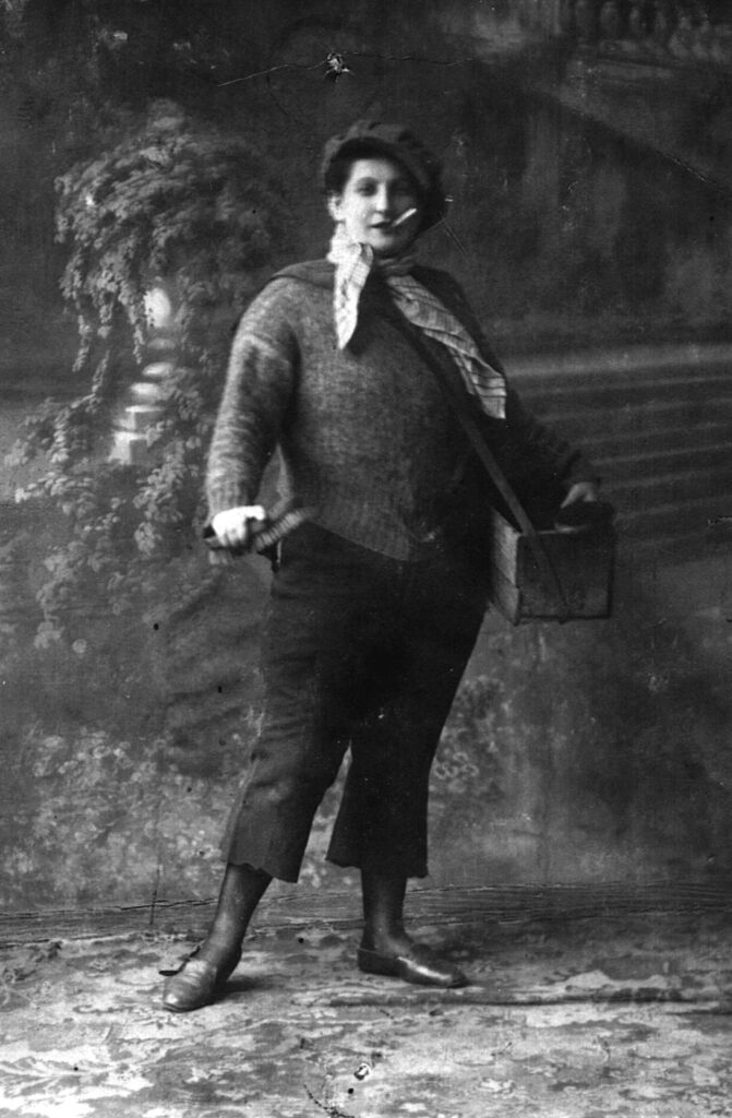 In this Photo the staged ‘he’ is really a ‘her’ who is of Basia Leibgold a character actress in one of the Yiddish theatres seen by Kafka as mentioned in the following link.