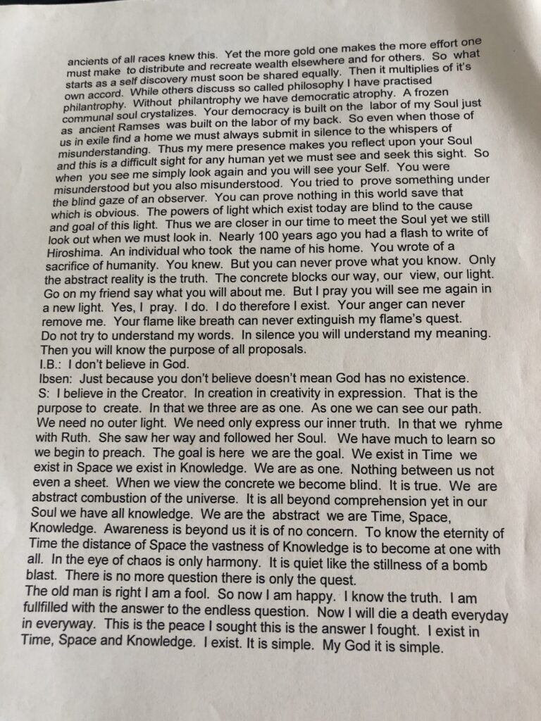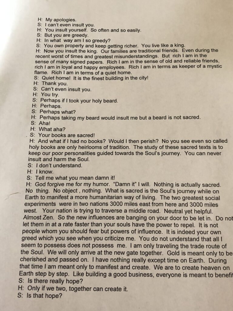 The English script of that last part of the play is below. Thanks for helping translate Michaela Lind! I finally found the original English version for the last page of the main text. But I needed your translation still for the closing Ritual’s poem. All is below.