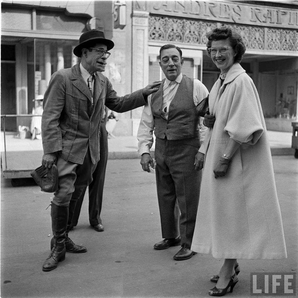 Clown/Actor Joe E Brown with; Buster Keaton and his wife Eleanor.