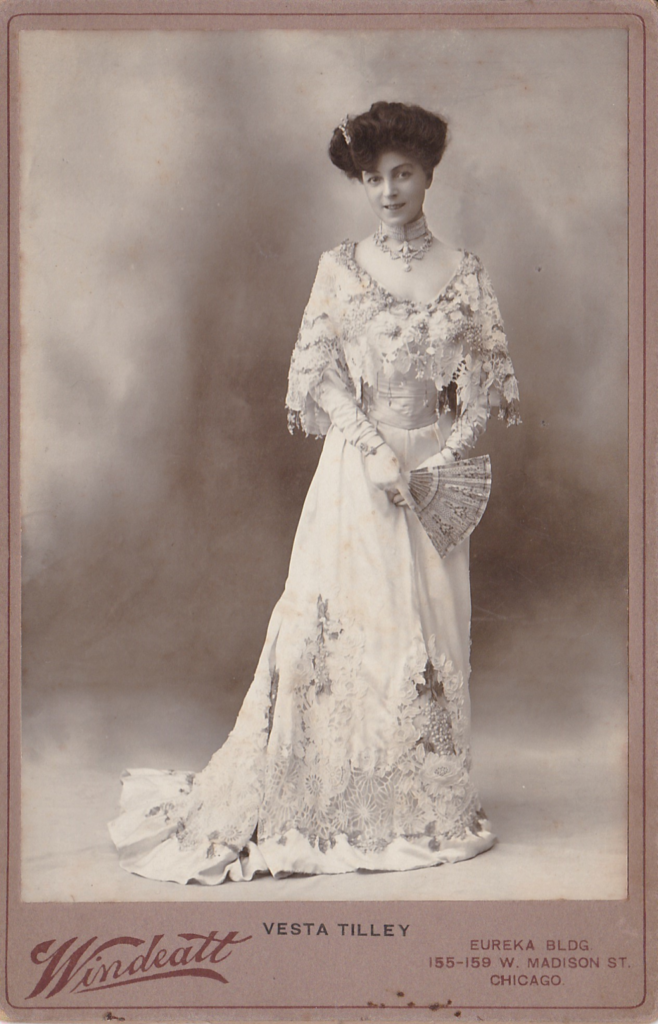 The actress/clown Julie Andrews, she who played Mary Poppins in the film, starred also in the film Victor/Victoria when she portrayed an interpretation of a Music Hall ‘clown’ famed as a Male Impersonator. That was Ella Shields. Shields famously performed one song that was a direct parody and homage to Vesta Tilley. Julie Andrews performs as Shields doing that particular parody/homage to Vesta Tilley in the film of 1982.